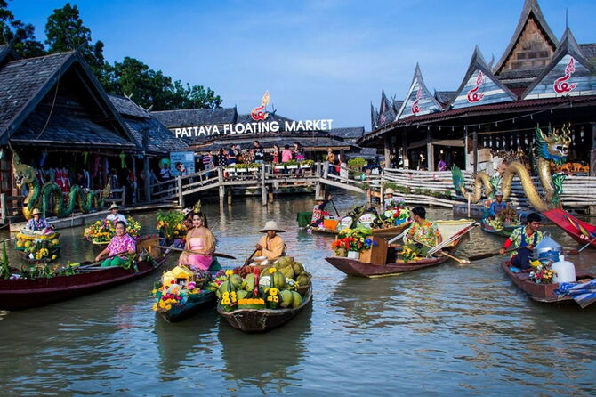 Chợ Nổi Bốn Miền – Bao trùm cả một khu vực có diện tích lên đến 100.000m2. Chợ Nổi 4 miền (Four Regions Floating Market) là một trong những chợ nổi Pattaya nổi tiếng nhất, tại đây quý khách tự do mua sắm và thưởng thức các món ăn đặc sản Thái Lan.