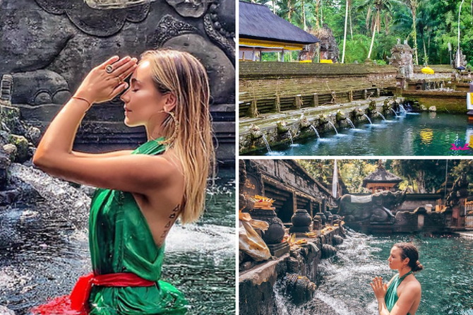 - Đền Tirta Empul: ngôi đền được tôn thờ như là đời sống tinh thần của người dân địa phương, là nơi làm thanh lọc tâm trí, linh hồn tan biến những lo toang, muộn phiền, tội lỗi hay những ảnh hưởng xấu trong cuộc sống. Phía trước đền là hồ nước thiêng... dù là dân địa phương hay người theo đạo Hindu đến từ các nơi trên thế giới khi tới Tampak Siring đều có ước nguyện được tắm mình qua mười hai dòng chảy thiêng liêng, với mong muốn được gột rửa bụi trần, gột rửa những điều không may mắn trên cơ thể và linh hồn, muốn được thần linh ban phước, vuốt ve và che chở, mang lại cho họ một cơ thể mạnh khỏe, một tâm hồn thanh tịnh và một trí tuệ minh mẫn.