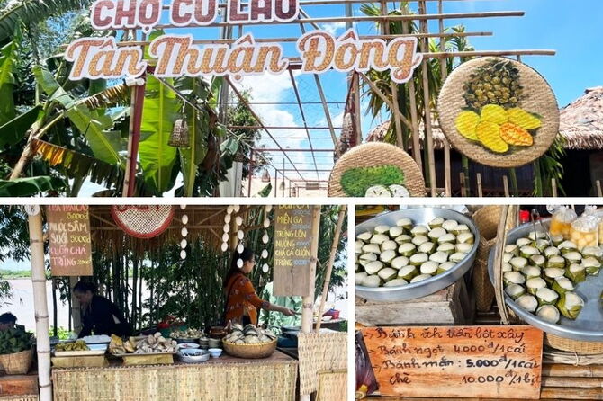 15h00: Đoàn di chuyển đến bến tàu qua Cồn Tân Thạnh Đông tham quan Chợ Quê trải nghiệm cách làm bánh dân gian thú vị, ngắm cảnh đường quê. Thưởng thức đặc sản địa phương, các loại bánh dân gian. Tham quan các gian hàng, mua sắm các sản phẩm đặc sản Đồng Tháp.
