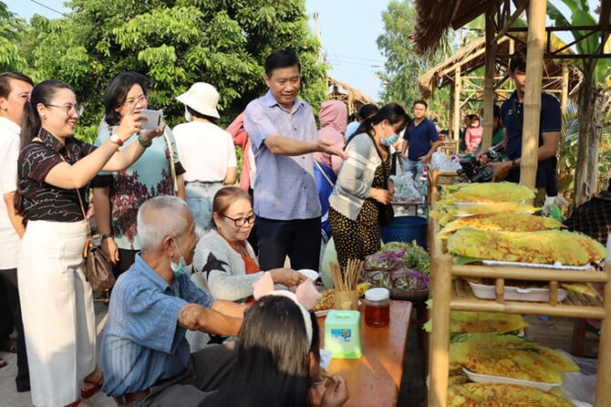 Không chỉ là chuyến đi thưởng ngoạn, hành trình còn mang đến trải nghiệm đậm hồn quê – tự tay làm bánh dân gian, thưởng thức ẩm thực Đồng Tháp tươi ngon, và ghé chùa Phước Kiểng chiêm ngưỡng lá sen khổng lồ độc đáo.