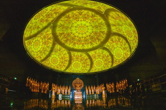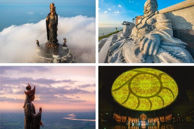 • Ngoài ra, Quý khách còn có dịp chiêm ngưỡng Tôn tượng Phật Di Lặc được ghép tinh xảo từ 6.688 viên đá sa thạch, cùng tham quan Nhà Mái Vòm – khu trình chiếu video mapping 3D độc đáo tái hiện vũ trụ Phật giáo bằng công nghệ hiện đại.