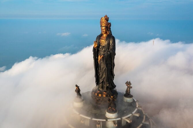 • Trên đỉnh núi, Quý khách chiêm bái Tượng Phật Bà Tây Bổ Đà Sơn – cao 72m, được đúc từ 170 tấn đồng đỏ, là tượng Phật Bà cao nhất Đông Nam Á. Đây là biểu tượng của lòng từ bi, trí tuệ và tinh thần hướng thiện của Phật tử.