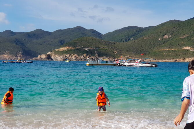 Sau đó Quý khách di chuyển xuống tàu đáy kính tham quan vịnh Vĩnh Hy, ngắm bãi đá tròn với những viên đá đủ màu sắc tuyệt đẹp, tham quan hang Yến, đầm Đăng. Quý khách có dịp ngắm cảnh sinh hoạt của ngư dân ở vịnh Vĩnh Hy.