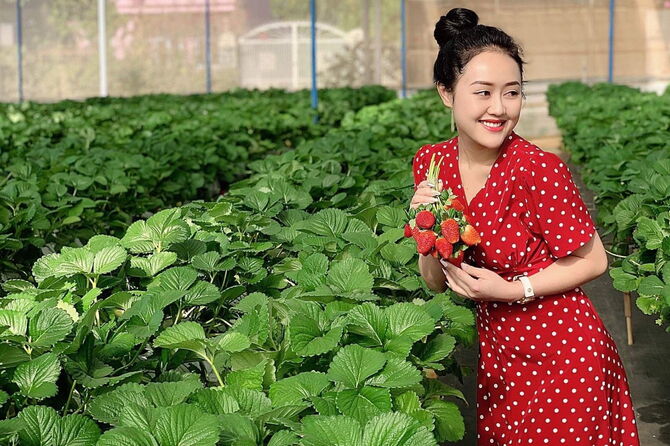 - Nông trại còn có vườn dâu tây trĩu quả, nơi du khách có thể tự tay hái những trái dâu tươi ngon mọng nước.