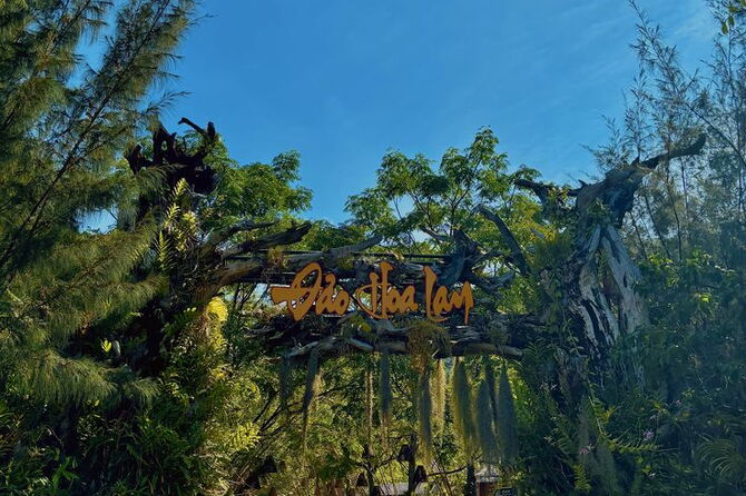 07h30: Xe đưa đoàn đến khởi hành đến cảng Du lịch. Quý khách lên Tàu bắt đầu hành trình khám phá bán đảo Hòn Hèo, sau đó tàu đến với đảo Suối Hoa Lan, có rất nhiều tọa độ check in đẹp như con đường hoa lan, vườn bướm, hồ Nghinh Xuân, vườn Disney, vườn Đà điểu. Ngoài ra, du khách còn có thể đắm mình trong làn nước mát ở bãi tắm An Bình.