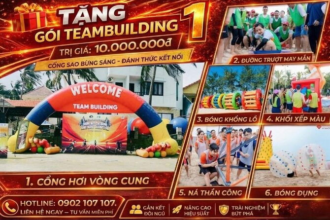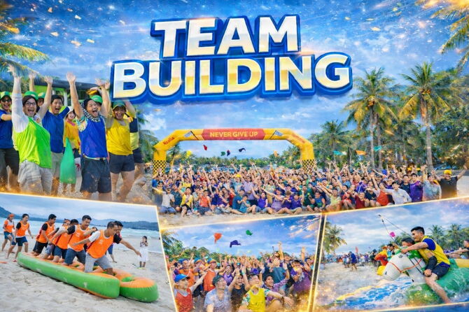 15h30: Đoàn tập trung ra biển hòa mình vào CHƯƠNG TRÌNH TEAMBUILDING với chủ đề “NĂNG LƯỢNG TUỔI TRẺ – THỬ THÁCH – THẮNG LỢI”, nơi mọi thành viên sẽ được trải nghiệm chuỗi trò chơi sôi động, vui nhộn, kết hợp đạo cụ sống động, màu sắc. Mỗi thử thách được thiết kế để thổi bùng năng lượng, khơi dậy tinh thần đồng đội và sự sáng tạo trong từng thành viên. Với nhiệt huyết tuổi trẻ và tinh thần “cháy hết mình”, mọi người sẽ cùng vượt qua giới hạn bản thân, thi đấu hết mình, tạo nên chiến thắng cho đội nhóm và nhận những phần quà hấp dẫn. Đây không chỉ là sân chơi gắn kết mà còn là cơ hội để khẳng định bản lĩnh tập thể, nâng tầm thương hiệu và cùng Ban Giám Đốc xây dựng công ty phát triển vững mạnh, vươn cao trên mọi lĩnh vực.